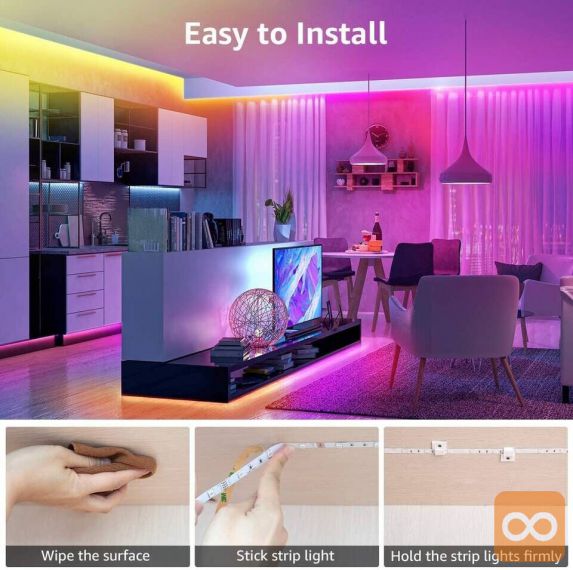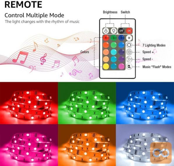 • Glasbeni LED trak za svetlobo: RGB LED trak lahko sledi glasbi ali zvočnemu posnetku, luči pa bodo v glasbenem načinu plesale skupaj z glasbenimi takti (ali ploskanjem z rokami). Uporabite ga, da oživite svojo okolico!