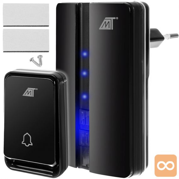 - SPECIFIKACIJA – barva: črna; napajanje zvonca: v omrežje; gumb za napajanje: brez baterij; 3-stopenjski nadzor glasnosti; glasnost: 90 dB; 51 polifoničnih zvokov, med katerimi lahko izbirate; domet: 150 m; vodoodporen: IP44; seznanjanje sprejemnikov: da; skupno zmanjšanje glasnosti: da; mere zvona: 8,5x5x2 cm; dimenzije sprejemnika: 10×6,5×6 cm; teža: 0,132 kg; teža v paketu: 0,177 kg.