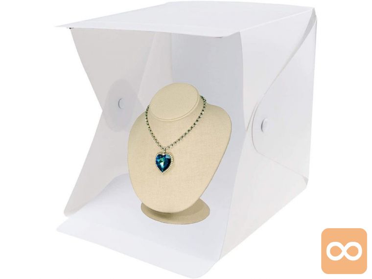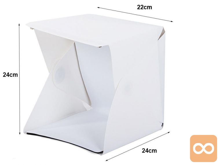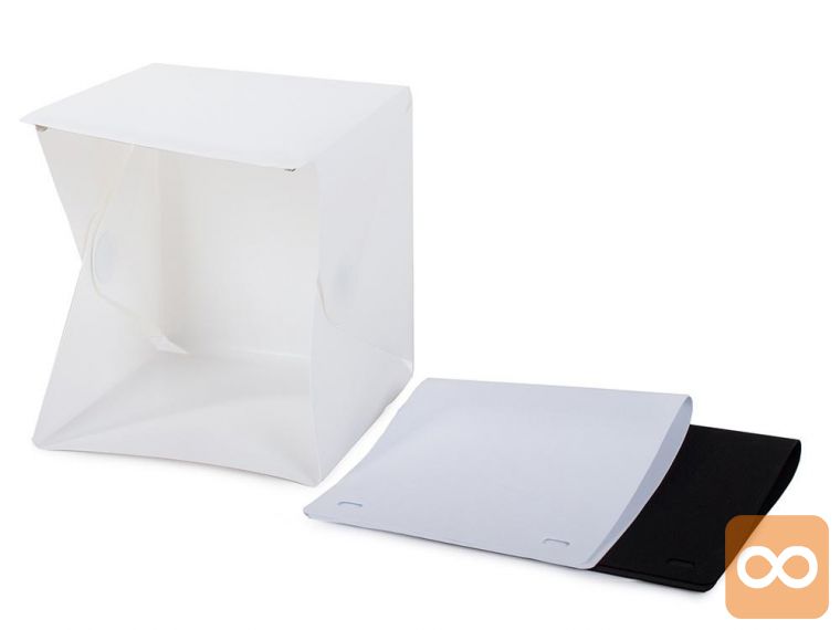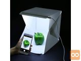 Šotor ima zelo preprosto zgradbo . Dovolj je, da ga razporedite po ravni površini, nato pa upognete robove na črte in pritrdite z vgrajenimi magneti. Izberemo poljubno ozadje : belo ali črno, priklopimo USB kabel in lahko slikamo.