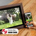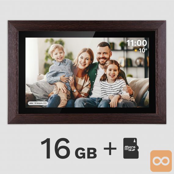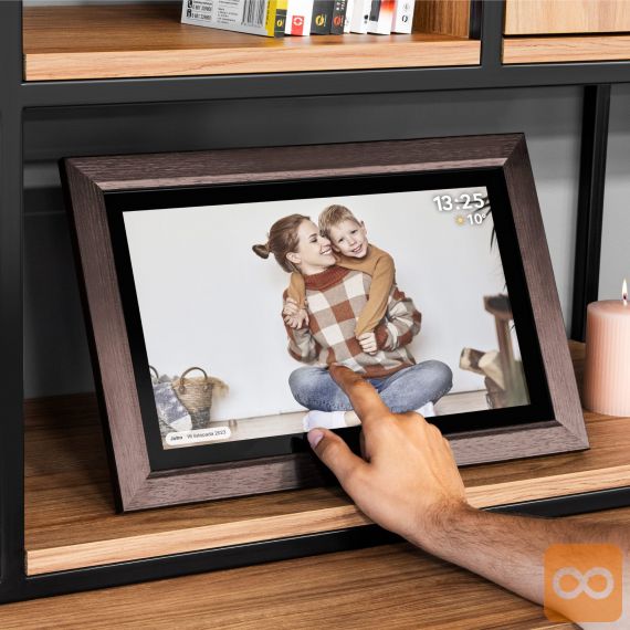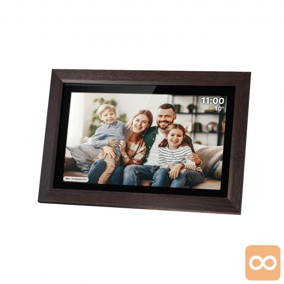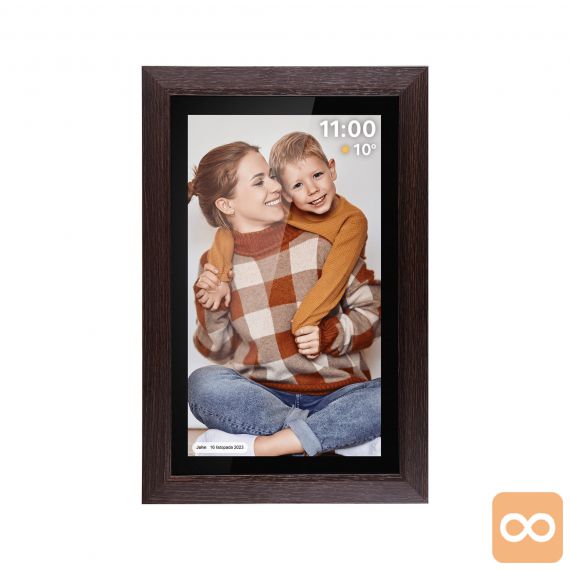 Oživite svoje najlepše spomine in jih delite z najbližjimi na popolnoma nov način! Digitalni foto okvir FRAMEO je elegantna in moderna naprava, ki s 15,6-palčnim zaslonom na dotik v visoki ločljivosti omogoča prikazovanje fotografij in kratkih videoposnetkov. Okvir se prek Wi-Fi povezave poveže s spletom, kar vam omogoča, da na daljavo pošiljate fotografije iz telefona neposredno v okvir – kjerkoli že ste. Z elegantnim lesenim okvirjem se bo ujel v vsak dom, vgrajen zvočnik pa bo spominom dodal še zvočno dimenzijo.