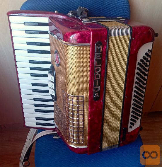 Klavirska, melodija manon, Prodam klavirsko harmoniko znamke Melodija Manon.Harmonika je rdeče bareve, 80-basna in ima 3 k...