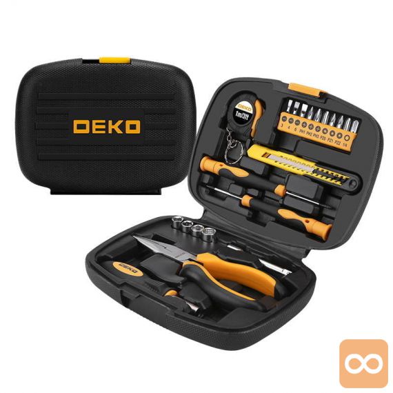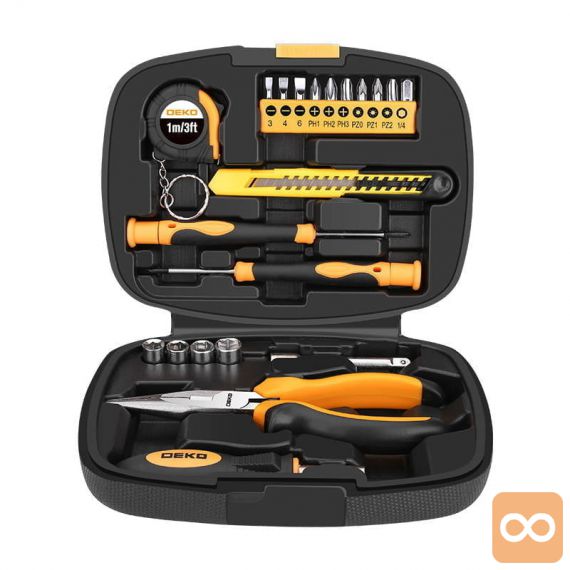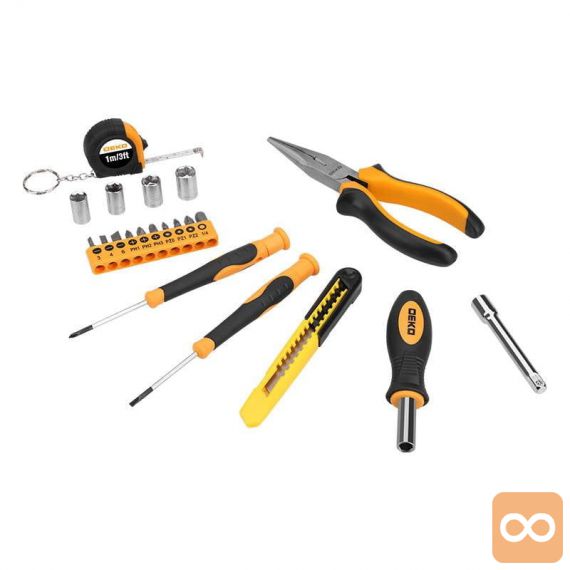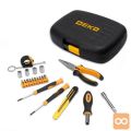 Potrebujete vsestranski set za svojo domačo delavnico? Set orodij Deko Tools TZ21 bo deloval odlično! Priročen in funkcionalen set orodja vam bo olajšal delo. Vsebuje kar 21 kosov orodja. Med njimi nož z zlomljenim rezilom, dolge klešče, merilni trak ali 2 natančna izvijača itd. Predmeti so izdelani iz visokokakovostnih materialov in zagotavljajo udobno uporabo. Vsi elementi kompleta so nameščeni v praktičnem kovčku, zaradi česar je njihovo shranjevanje enostavno in udobno.
