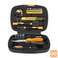 Garnitura vključuje široko paleto orodij, ki so izdelana iz visokokakovostnih materialov, kar zagotavlja dolgo življenjsko dobo in zanesljivost. Vključuje izvijače, klešče, ključe, kladiva, žage in še veliko več. Vsako orodje je skrbno izbrano, da zagotavlja optimalno funkcionalnost in udobje pri uporabi.