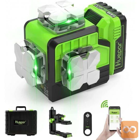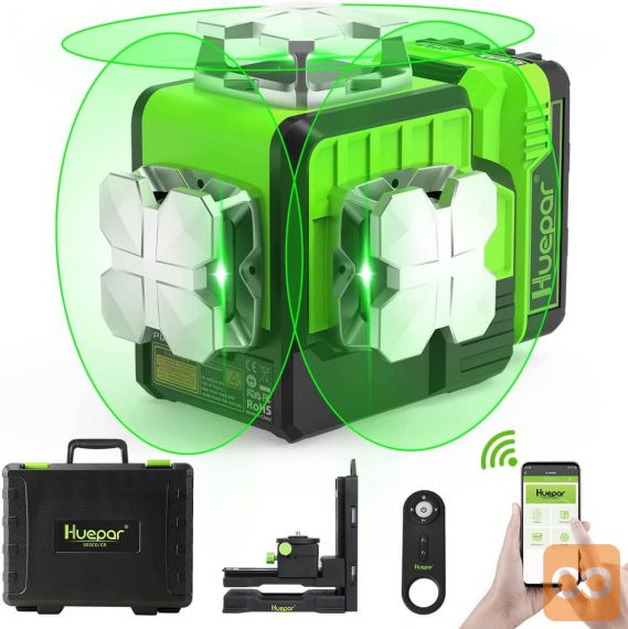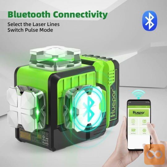 Povezljivost Bluetooth omogoča nadzor nastavitve laserja iz vsega prostora z aplikacijo Huepar na pametnem telefonu ali daljinskem upravljalniku. Aplikacija in daljinski upravljalnik lahko vklopita/izklopita laserske črte in impulzni način ter izbereta laserske ravnine. Aplikacija Huepar ponuja tudi alarm izven nivoja. Lasersko orodje lahko hkrati poveže dve napravi Bluetooth. Z daljinskim upravljalnikom postane poravnava preprosta in hitra.