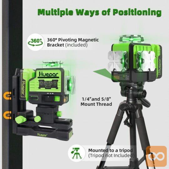 | Delovni prostor | 25m, 50-60m z laserskim detektorjem Huepar LR-6RG/LR-5RG |