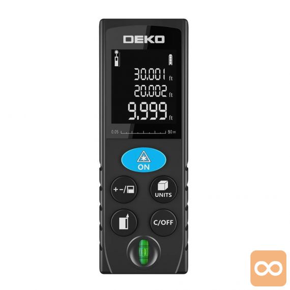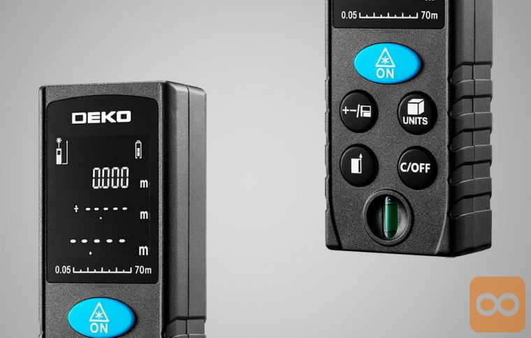 Merilnik razdalje Deko Tools ponuja tudi več uporabnih funkcij, ki vam olajšajo delo. Med drugim se lahko uporablja za enkratne in neprekinjene meritve z minimalnimi in maksimalnimi vrednostmi, merjenje površine, merjenje prostornine in merjenje s pomočjo Pitagorovega izreka. Še več, laser se samodejno izklopi po 30 sekundah nedejavnosti, merilnik razdalje pa po 180 sekundah – ne skrbite, če pozabite.
