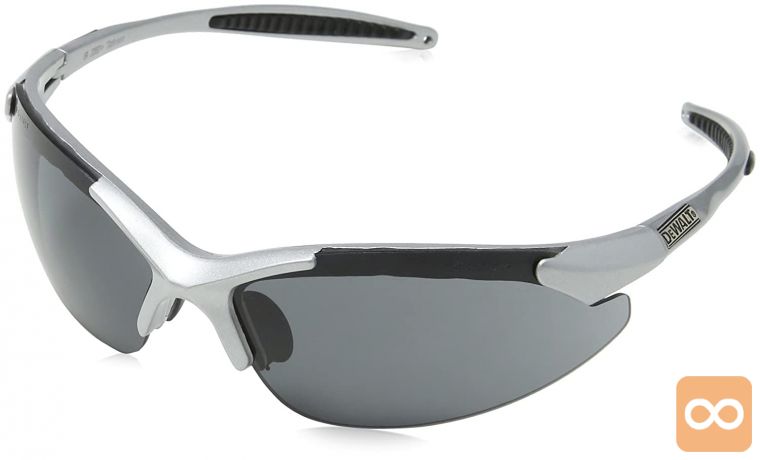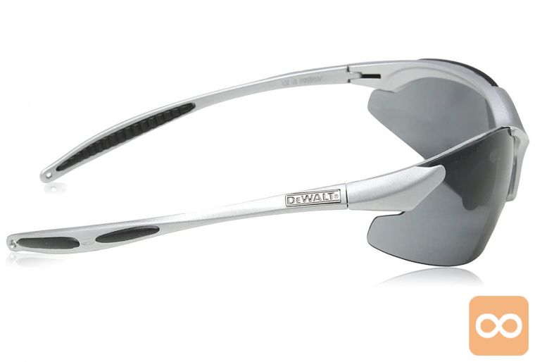 DEWALT INFINITY ogrodje okoli temnjenega varnostnega stekla zagotavlja odlično prileganje z gumijastimi nedrsečimi čepki in mehkim udobnim nosnim delom, hkrati pa ohranja odlične vidne linije in stransko zaščito s širokimi lečami.