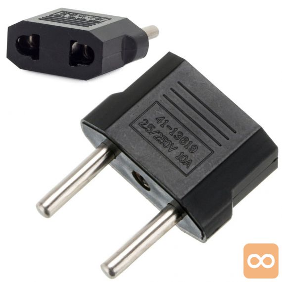 Zanesljiv adapter, ki vam omogoča priključitev na EUe vtičnice, električne naprave iz ZDA ali Kitajske. Vtič je adapter in ne spreminja napetosti.