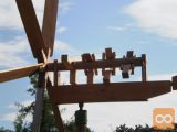 Vinogradniški klopotec,nov,ročno izdelan iz hrastovega lesa v kombinaciji z jesenovim in češnjevim lesom.Klopotec je šestkraki,z osmimi tolkali,premer vetrnice od 115 do 250 cm.Primeren za vinograde ali sadovnjake ali kot okras v domačem vrtu ali za rojstnodnevno darilo.Vse informacije na 041 858674