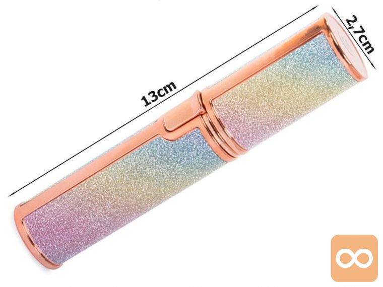 Epilator je videti zelo učinkovit. Etui je izdelan iz sijočih bleščic.