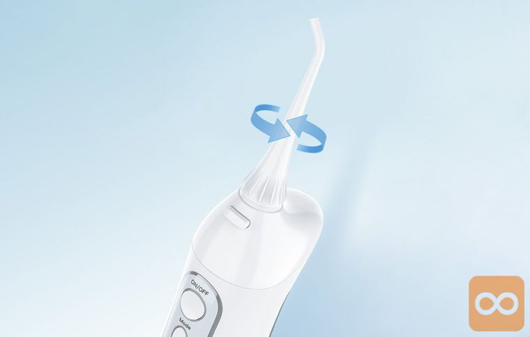 V kompletu boste našli kar 4 nastavke za irigator. Tako si ga lahko za umivanje zob uporablja cela vaša družina. Vse konice so relativno dolge in se vrtijo za 360°, kar vam omogoča, da dosežete tudi težje dostopne predele ust. Opomba: da preprečite razmnoževanje bakterij in vzdržujete higieno, priporočamo, da nastavek zamenjate vsake 3 mesece.