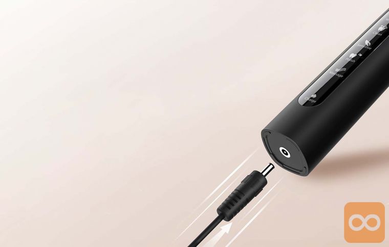 Ta zobna ščetka je opremljena z dolgotrajno baterijo, ki omogoča, da vam z enim polnjenjem odlično služi do 30 dni. Polnjenje traja približno 4 ure. Naprava podpira razpon napetosti 110-240V, kar pomeni, da jo lahko brez težav priključite ne le na navaden omrežni polnilec, ampak tudi na primer na powerbank ali prenosni računalnik.