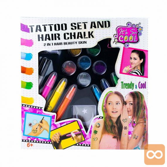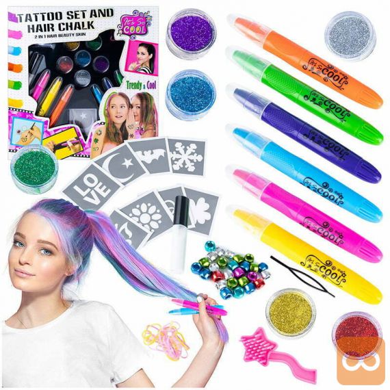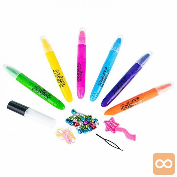 Set za okraševanje las in izdelavo tetovaž. Vsi okraski so varni in se zlahka sperejo s kože in las.