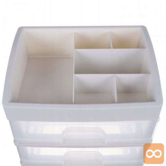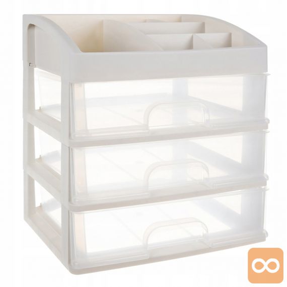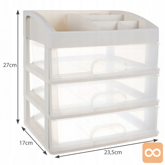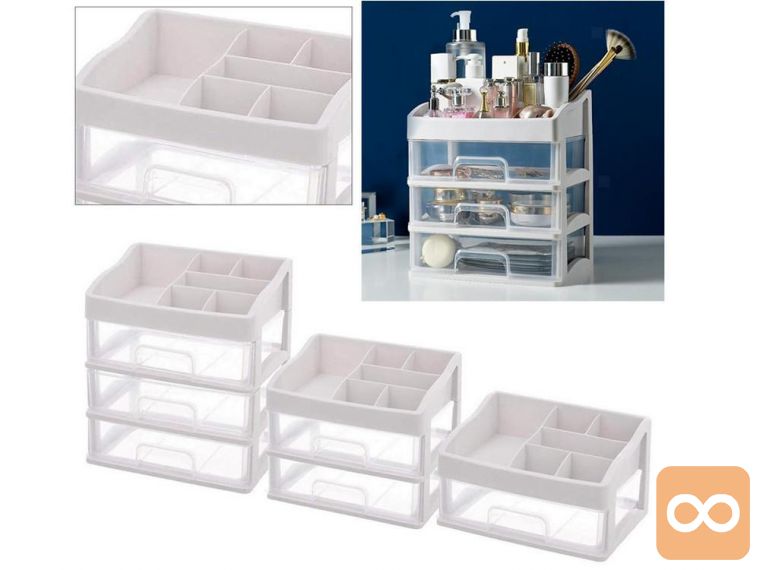• 3 PROZORNI PREDALI – organizator je izdelan iz prozornega materiala, zahvaljujoč kateremu lahko jasno vidite, kaj je v notranjosti, tako da lahko hitro najdete predmet, da ga dosežete. Ima 3 prozorne predale enake velikosti .