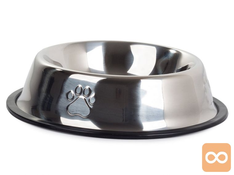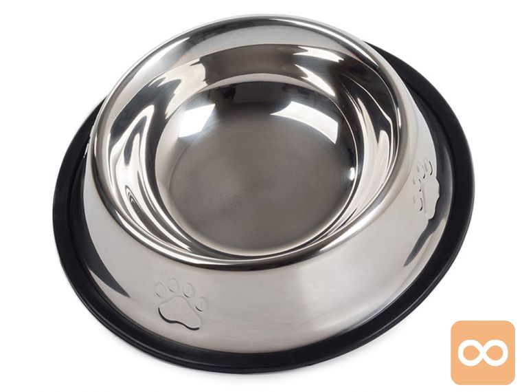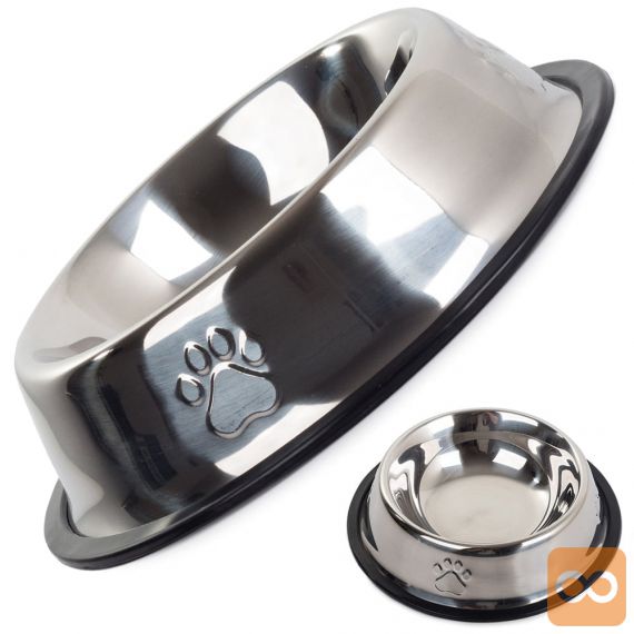 Izdelana je iz nerjavečega jekla in ima nedrsečo gumo, ki preprečuje premikanje posode za hrano.