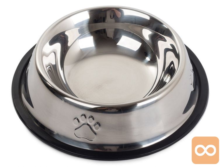 Izdelana je iz nerjavečega jekla in ima nedrsečo gumo, ki preprečuje premikanje posode za hrano.
