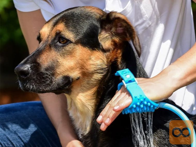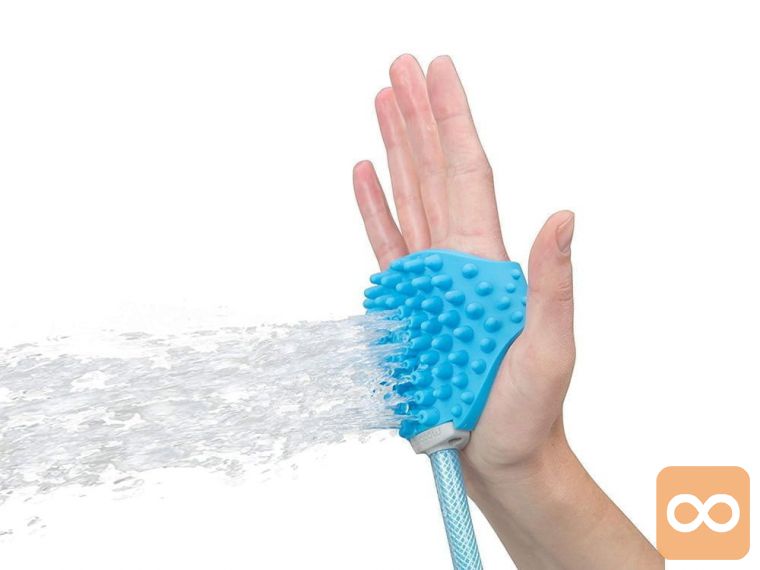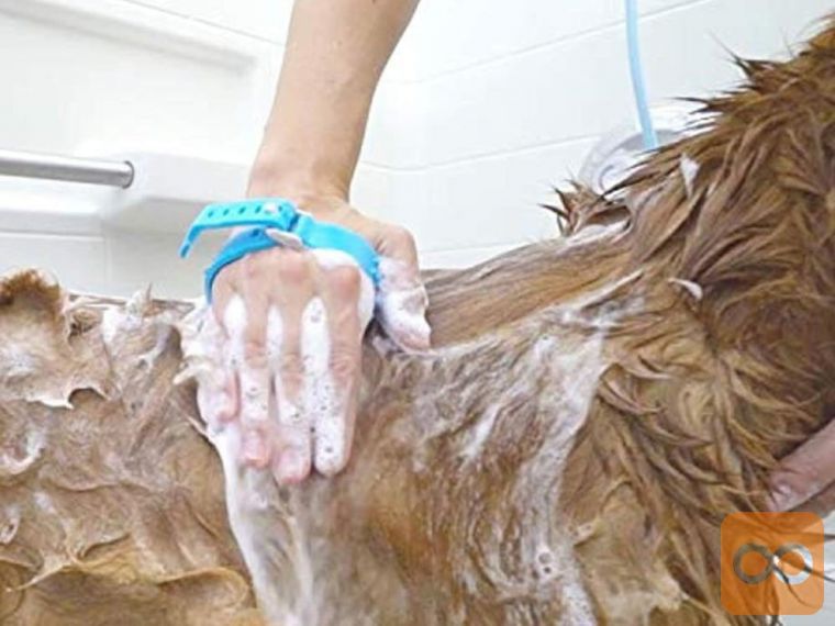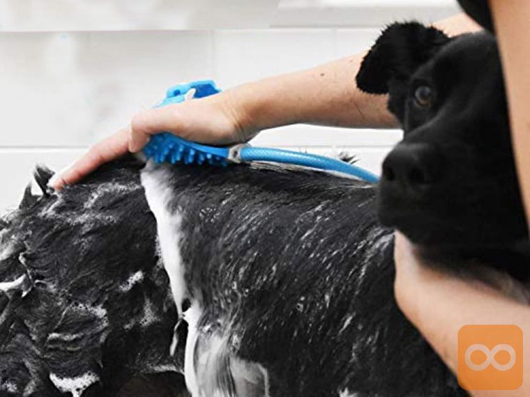 Pasja prha je v obliki ročne krtače . Zahvaljujoč številnim gumijastim vložkom bomo poskrbeli za prijetno masažo, ki izboljša prekrvavitev kože in videz dlake našega ljubljenčka, hkrati pa ga bomo temeljito umili.