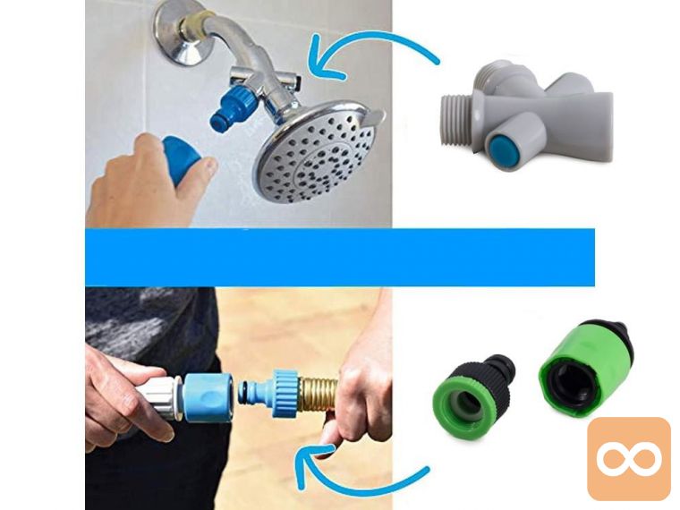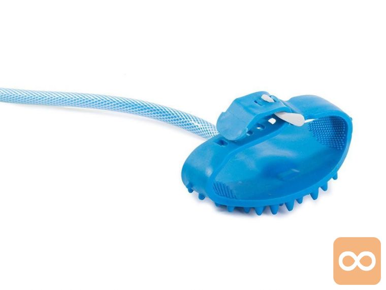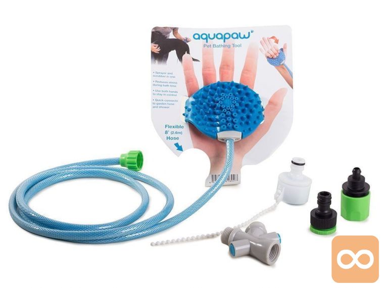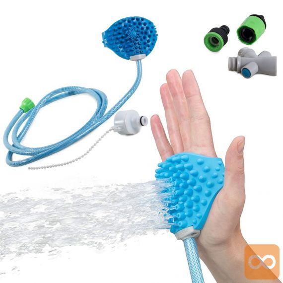 V kompletu je plastični razdelilnik , ki se namesti na prho, zaradi česar nam ni treba vsakič pritrditi kompleta za umivanje živali.