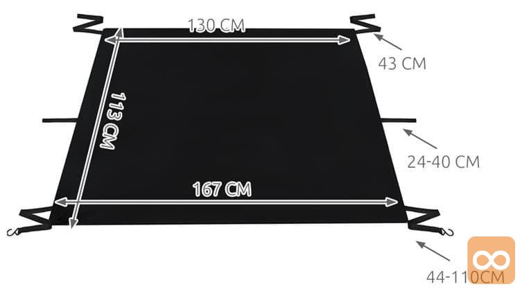 - dimenzije (širina zgoraj / višina / širina spodaj): 130x113x167cm