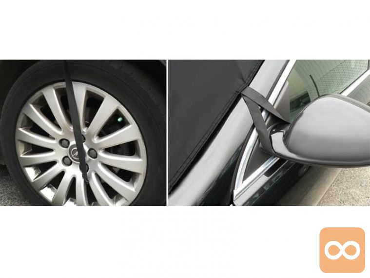 Enostaven za zlaganje in razpiranje – namestitev z zaloputnjenjem vrat, pripenjanje na ogledala in kolesa avtomobila s posebnimi kavlji, zahvaljujoč katerim se podloga trajno oprime vetrobranskega stekla in je veter ne odnese.