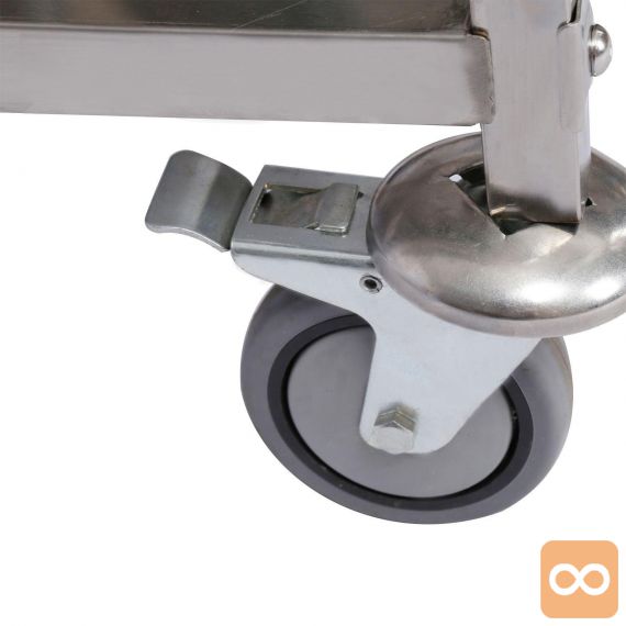 Koleščka z gladkim tekom iz trpežnega PVC-ja zagotavljajo neslišen transport in hkrati ščitijo tla pred praskami. Kolesca je mogoče zavrteti za 360°, tako da je voziček mogoče manevrirati tudi v najožjem prostoru. Praktični ročaji na obeh straneh zagotavljajo popoln nadzor. Voziček je opremljen tudi z zavorami, ki preprečujejo nenamerno odkotalitev.