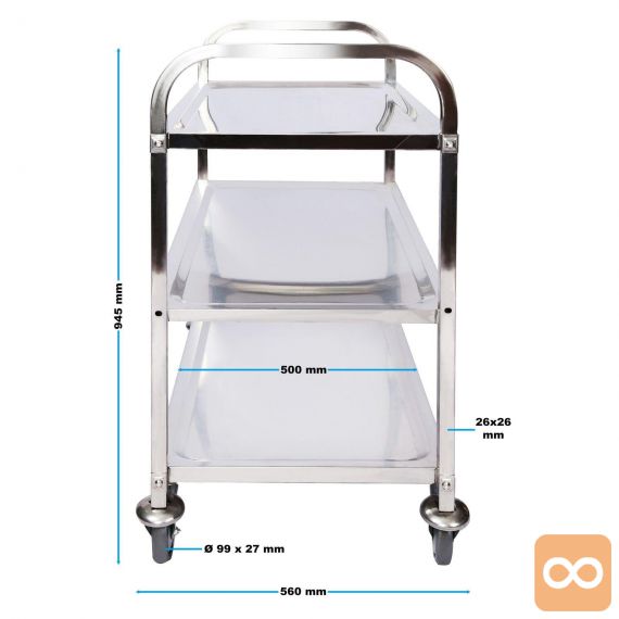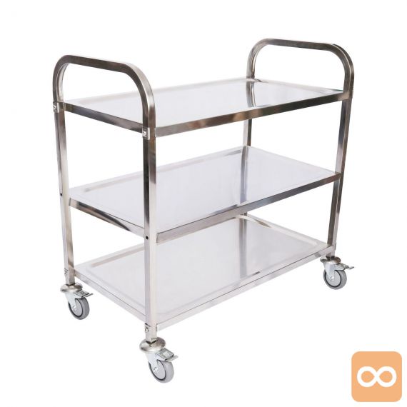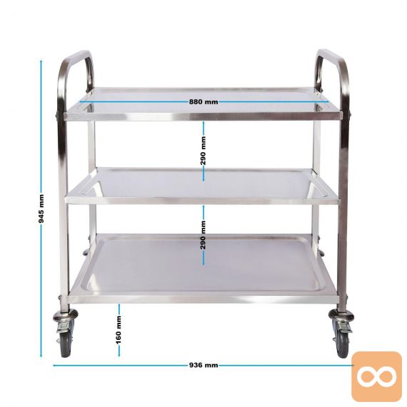 Ta servirni voziček iz nerjavečega jekla 304 ne ponuja le elegantnega dizajna, ampak je zaradi svoje stabilne konstrukcije in površine, ki jo je enostavno čistiti, idealen za vsakodnevno uporabo v poslovnih in zasebnih prostorih.