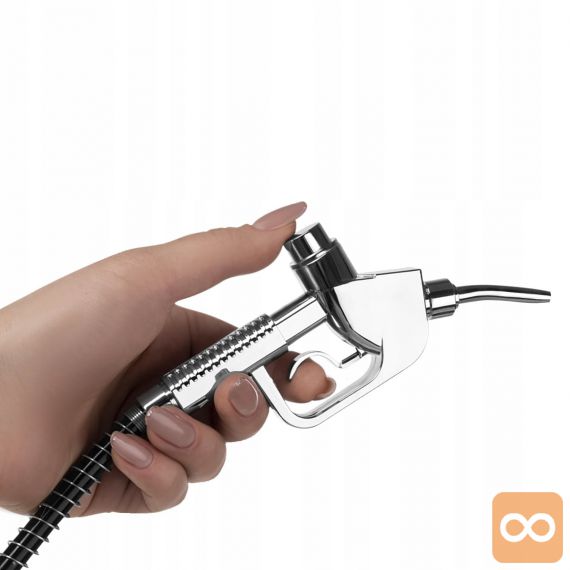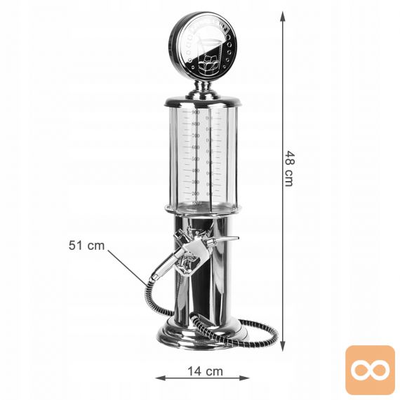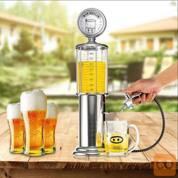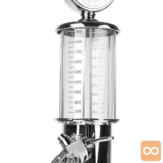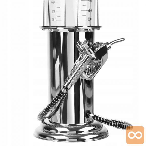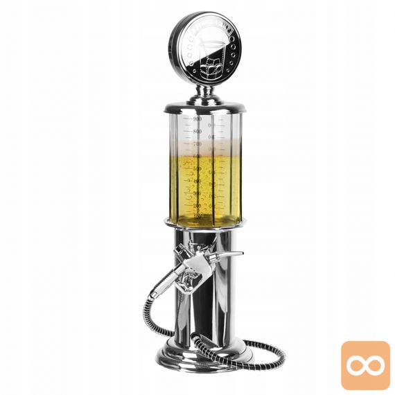 Originalni točilnik za pijačo, pivo in druge žgane pijače. Nenavadna oblika bencinskega avtomata. Priročna črpalka v obliki pištole za točenje goriva. Popoln pripomoček, ki bo služil kot nalivalec za zabave ali izvirno rojstnodnevno darilo. Velik, prozoren rezervoar za pijačo s tehtnico. Kromirano ohišje poveča estetsko izkušnjo.