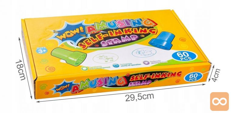 - 60 KOSOV V SETU – paket vsebuje kar 60 štampiljk z različnimi dizajni, kar vašemu malčku zagotavlja veliko ur zanimive zabave. Znamke imajo vzorce, kot so živali ali emotikoni .