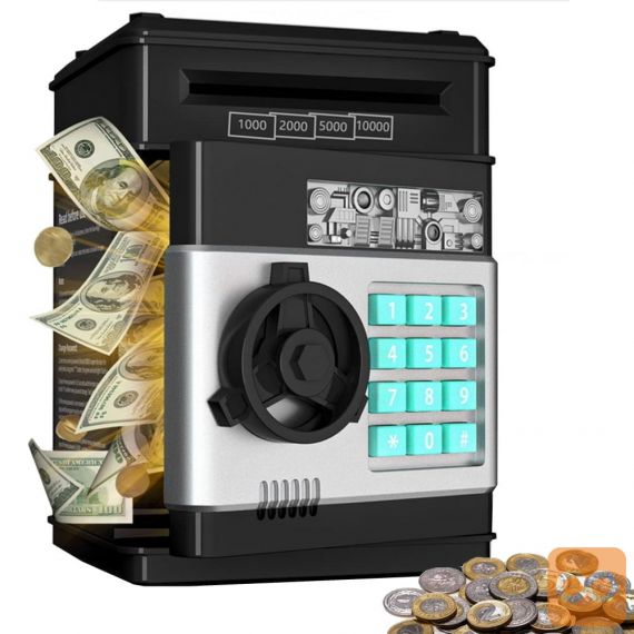 Elektronski sef za varčevanje PIN odpiranje – hranilnik črn