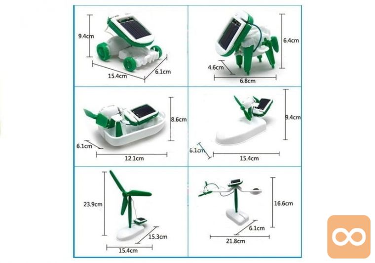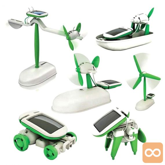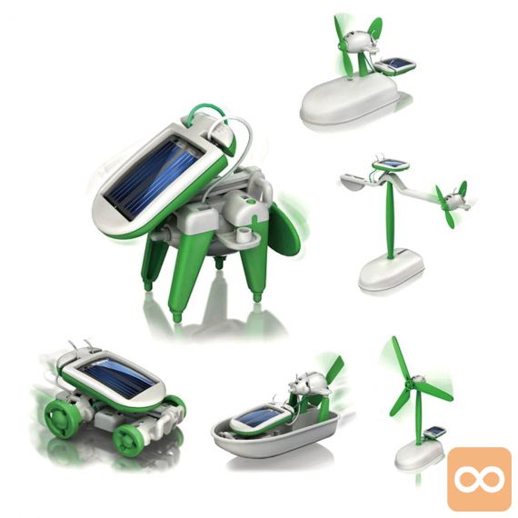 - To je izobraževalni gradbeni komplet, ki vam omogoča sestavljanje šestih različnih robotskih vozil na sončno energijo.