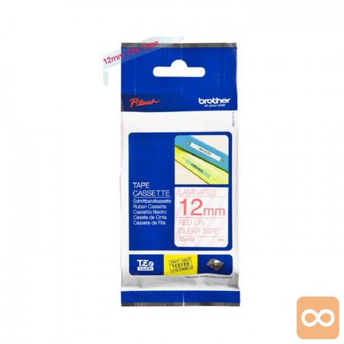 Originalni laminirani trak Brother TZE132 za vsestransko označevanje. Rdeča pisava na prozornem traku širine 12 mm. Dolžina kasete: 8 m. Odporen na vodo, UV, temperaturo, kemikalije in praskanje.