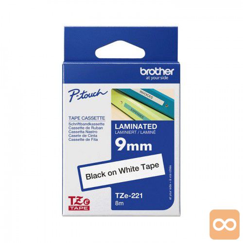 Trakovi > Trakovi za Brother (TZe / HSe), Mat nelaminirani trak Brother TZEN221 – brez bleščanja za čitljivost pod močno svetlobo...