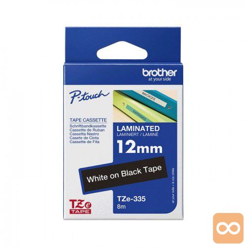 Trakovi > Trakovi za Brother (TZe / HSe), Originalni laminirani trak Brother TZE345 za vsestransko označevanje. Bela pisava na čr...