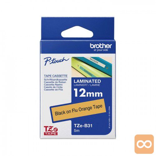 Trakovi > Trakovi za Brother (TZe / HSe), Fluorescenčni laminirani trak Brother TZEB51 z visoko vidnostjo. Črna pisava na oranžne...