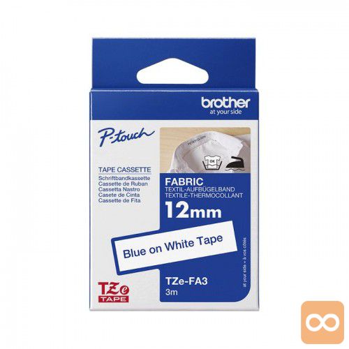 Trakovi > Trakovi za Brother (TZe / HSe), Tekstilni trak Brother TZEFA4 za likanje na tkanine. Črna pisava na belem traku širine ...