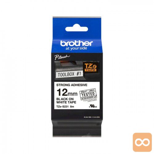 Trakovi > Trakovi za Brother (TZe / HSe), Originalni laminirani trak Brother TZE231 za vsestransko označevanje. Črna pisava na be...