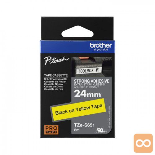 Trakovi > Trakovi za Brother (TZe / HSe), Originalni laminirani trak Brother TZE651 za vsestransko označevanje. Črna pisava na ru...