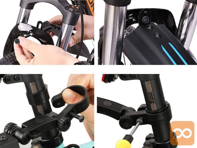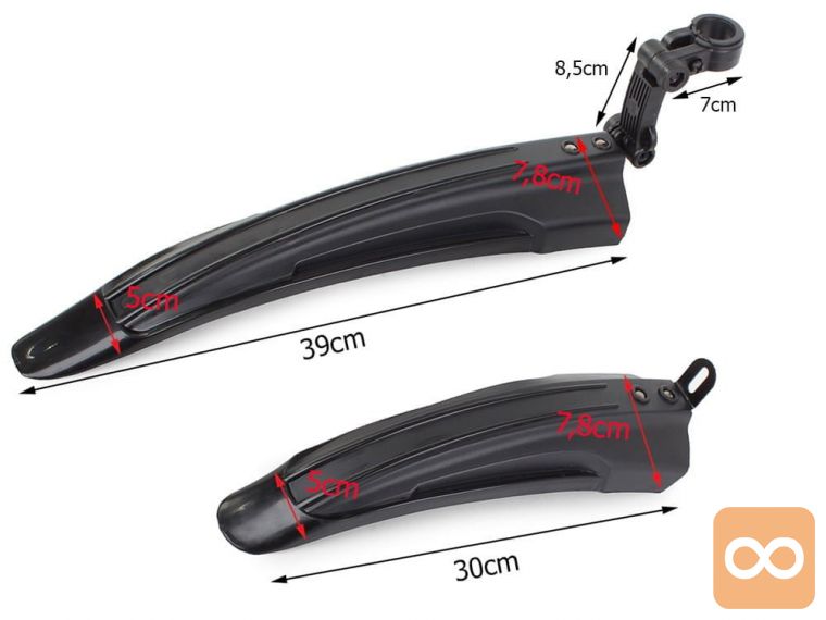 Zelo preprosta montaža in demontaža v nekaj minutah. Zahvaljujoč nastavljivemu ročaju lahko višino zadnjega blatnika prilagodite svojemu kolesu. Zelo enostavni za čiščenje, zasnovani v športnem slogu , izgledajo zelo lepo na kolesu.