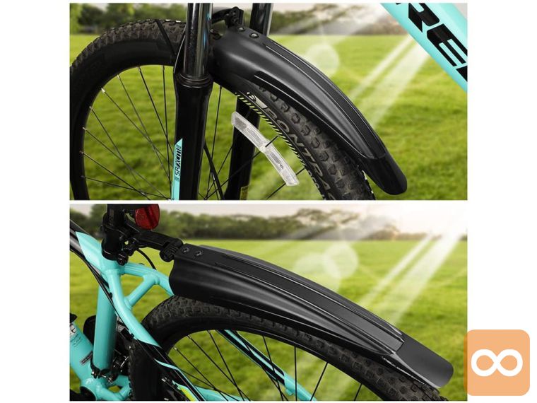 Blatniki za kolesa iz visoko kakovostnih materialov , spredaj in zadaj za kolesarjenje po mokrih površinah. Zasnovan z razširjenim polkrožnim blatnikom, učinkovito ščiti pred umazanijo, brizganjem vode in blatom.