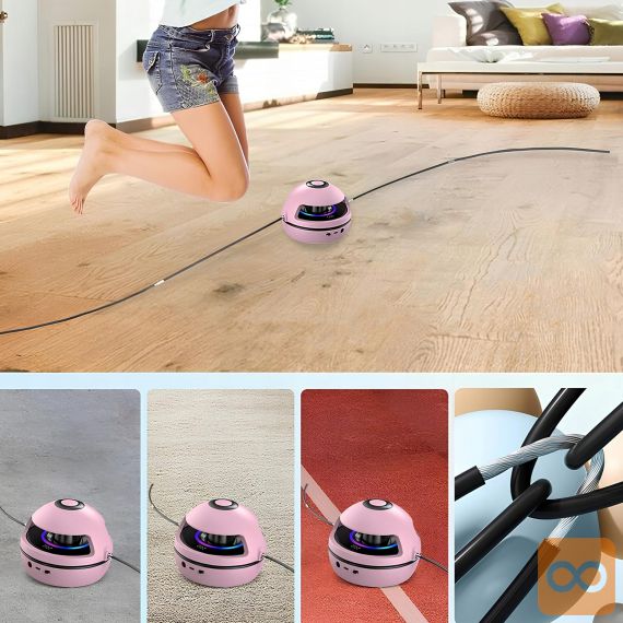 Predstavljamo vam Elektronsko Akumulatorsko Fitnes Kolebnico v elegantni roza barvi – ultimativni pripomoček, ki združuje tradicionalno kardio vadbo z moderno tehnologijo. Ta pametna kolebnica ni samo orodje za skakanje; je vaš osebni trener in motivacijski zvočnik v enem!