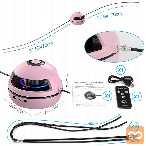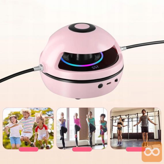 El. aku. fitnes kolebnica zvočnik pam. LED skakalna vrv roza