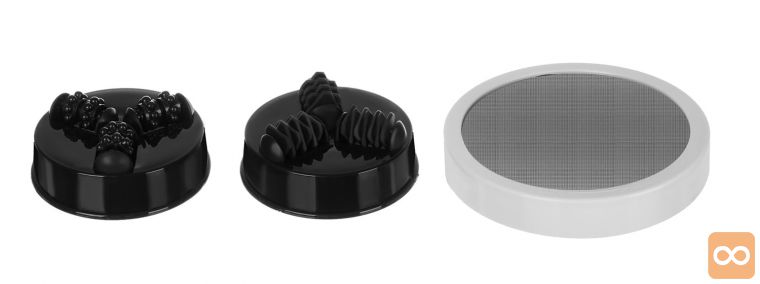 • Z 9 konicami – infrardeči shujševalni masažer je opremljen s kar 9 konicami, zahvaljujoč katerim lahko vsak enostavno izbere pravo konico, glede na trenutne potrebe in vrsto masaže .