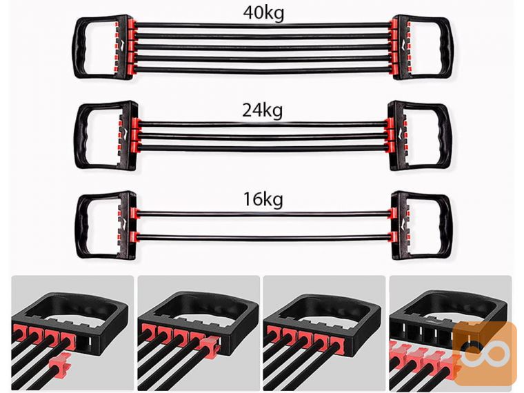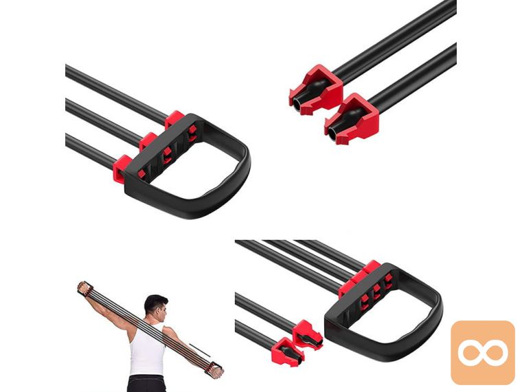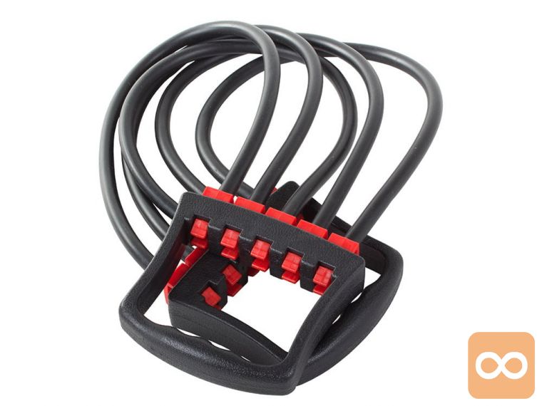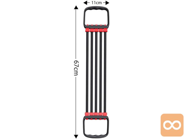 Ekspander je priročen vadbeni pripomoček , ki ga lahko uporabljamo tako pri treningu krepitve in raztezanja kot tudi med rehabilitacijo . Sestavljen je iz 2 ročajev in 5 raztegljivih gumijastih vrvi z visoko odpornostjo. Izdelan je iz visokokakovostnih materialov , ki zagotavljajo dolgotrajno uporabo.