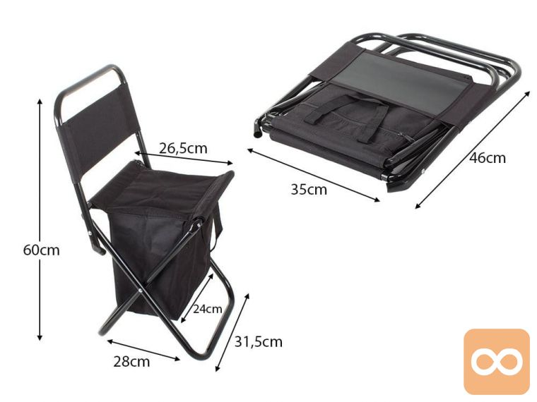 Turis. zlož. ribiški stol s termo hlad. torbo in naslon. črn