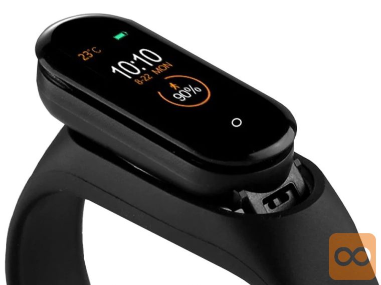 Ura se polni na zelo preprost način preko USB vtičnice, na primer na računalniku ali polnilniku. Za polnjenje naprave odstranite silikonski trak in jo povežite s priloženim kablom.