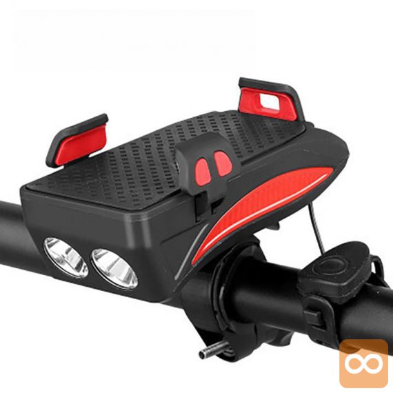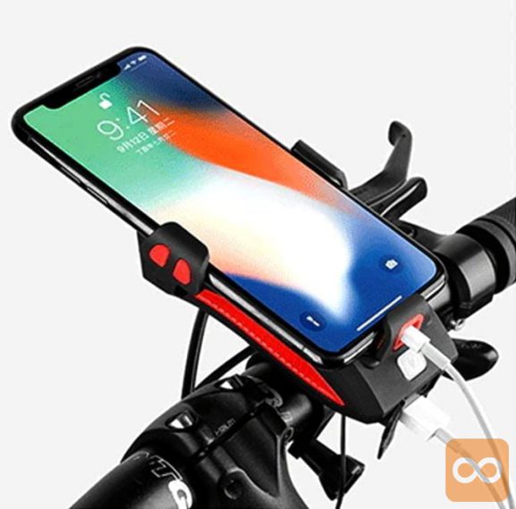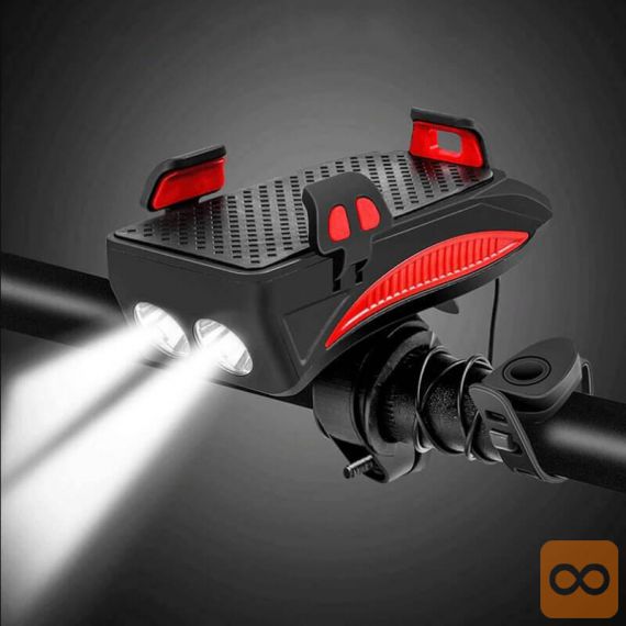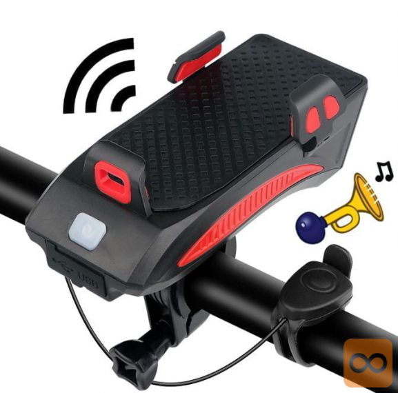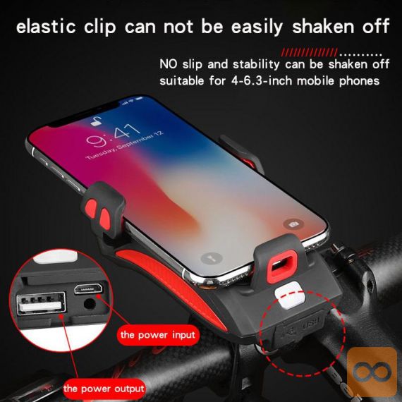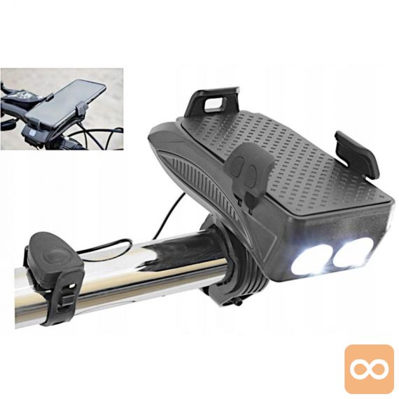 • Komplet luči za kolesa vključuje sprednjo svetilko z držalom za telefon, napajalno enoto in funkcijo hupe.
