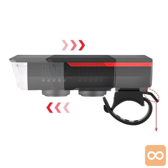 Sol. akumu. LED kolesarska svetilka in sirena 2000mAh USB