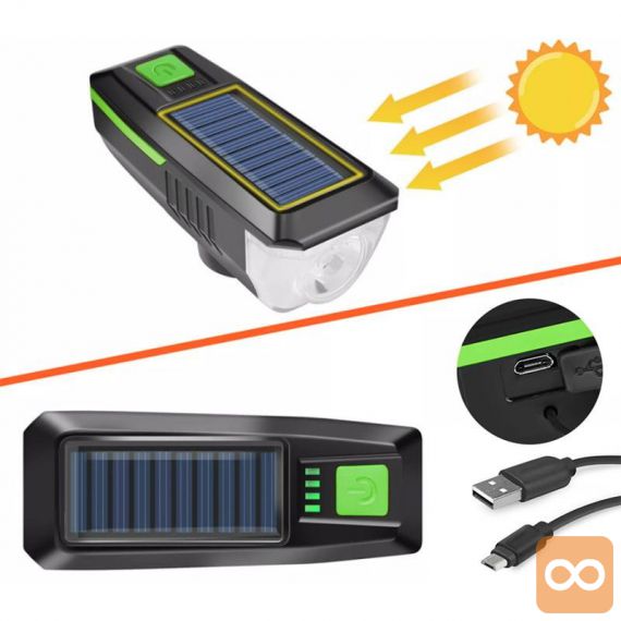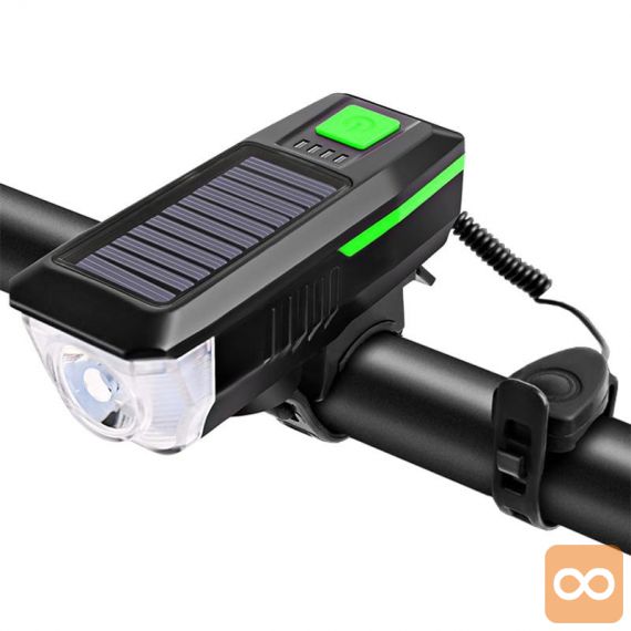 Naša svetilka je zasnovana z mislijo na varnost in udobje kolesarjev. Kombinacija močne LED luči in glasne sirene zagotavlja, da boste vedno vidni in slišani na cesti. Z možnostjo polnjenja preko solarnega panela ali USB kabla je ta svetilka idealna za dolge vožnje in avanture. Vodoodporna zasnova pa omogoča uporabo v vseh vremenskih razmerah.