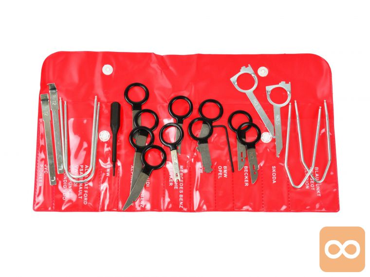 Komplet omogoča demontažo tako rekoč vsakega avtoradia.