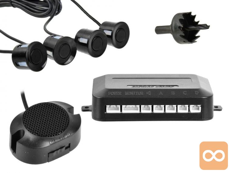 Univerzalni ultrazvočni 4-točkovni senzor za parkiranje / vzvratno vožnjo, opremljen z zvočnikom.
